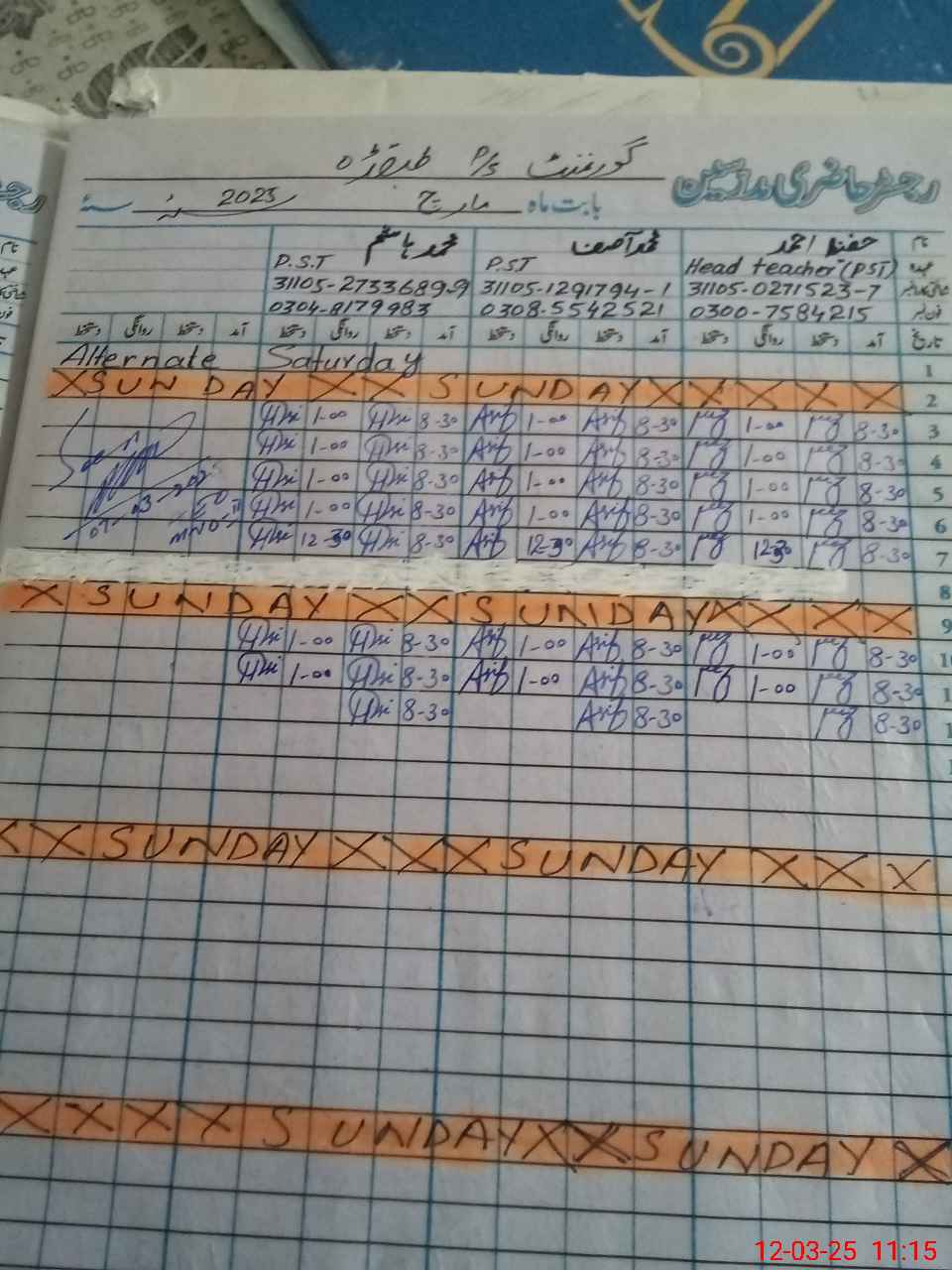 | Name: HA**** AH**** Designation: (School Headmaster's/Headmistress's) PST Phone/Cell Number: 03**** |