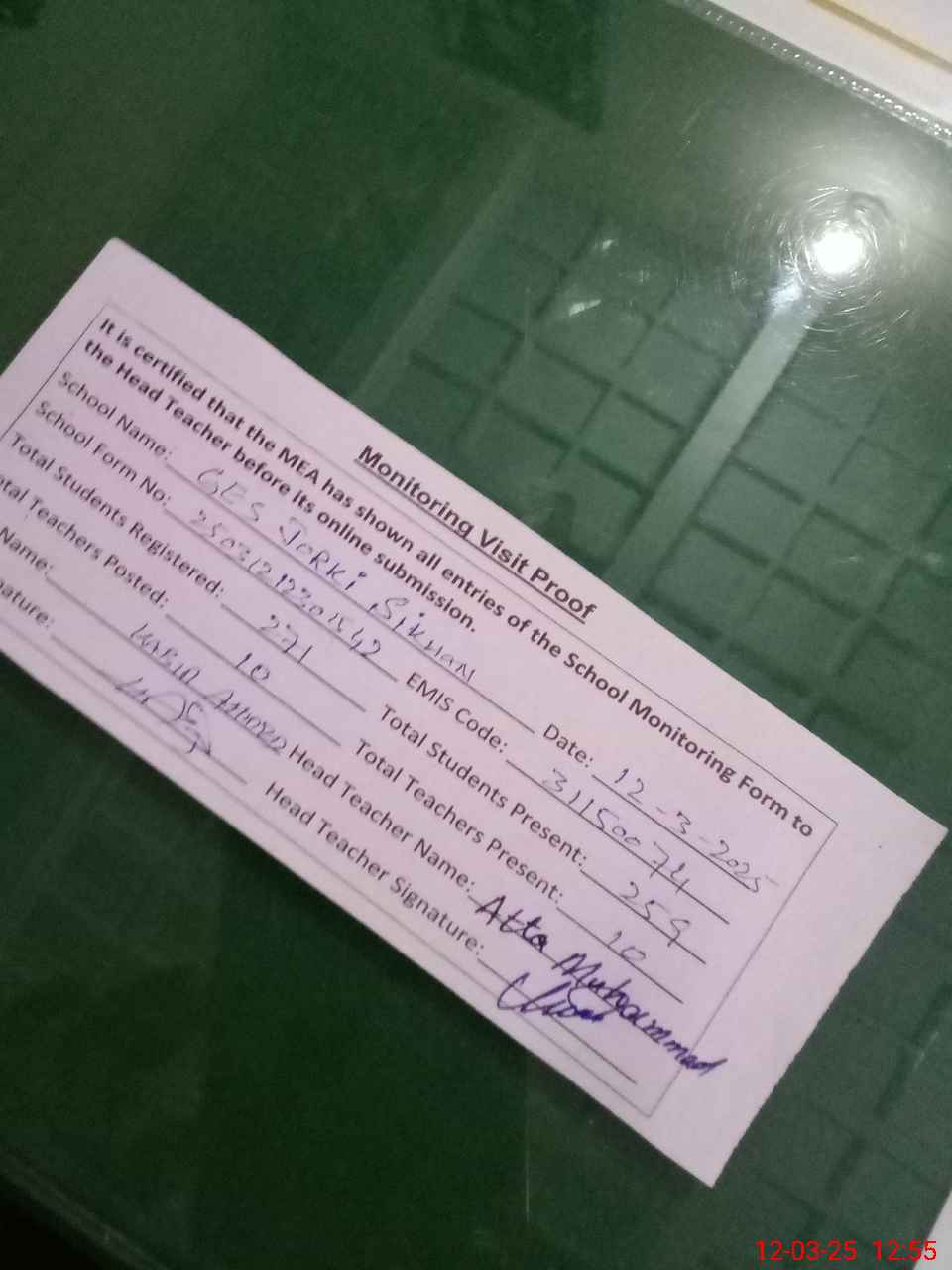 | Name: AT**** MU**** Designation: (School Headmaster's/Headmistress's) Sst Phone/Cell Number: 03**** |