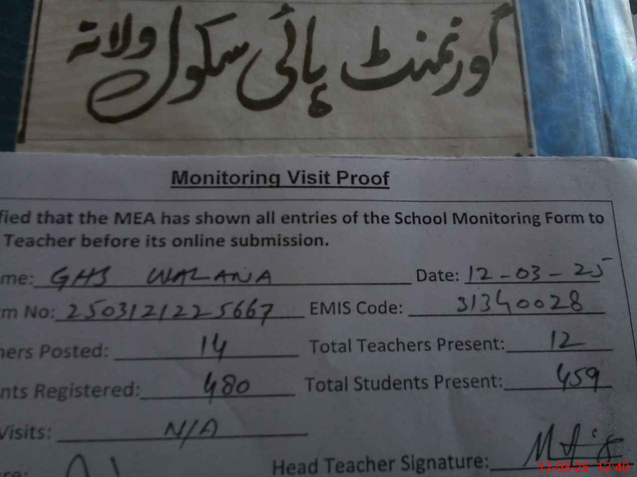 | Attendance Register | Head Teacher | MEA with School | Visit Proof |