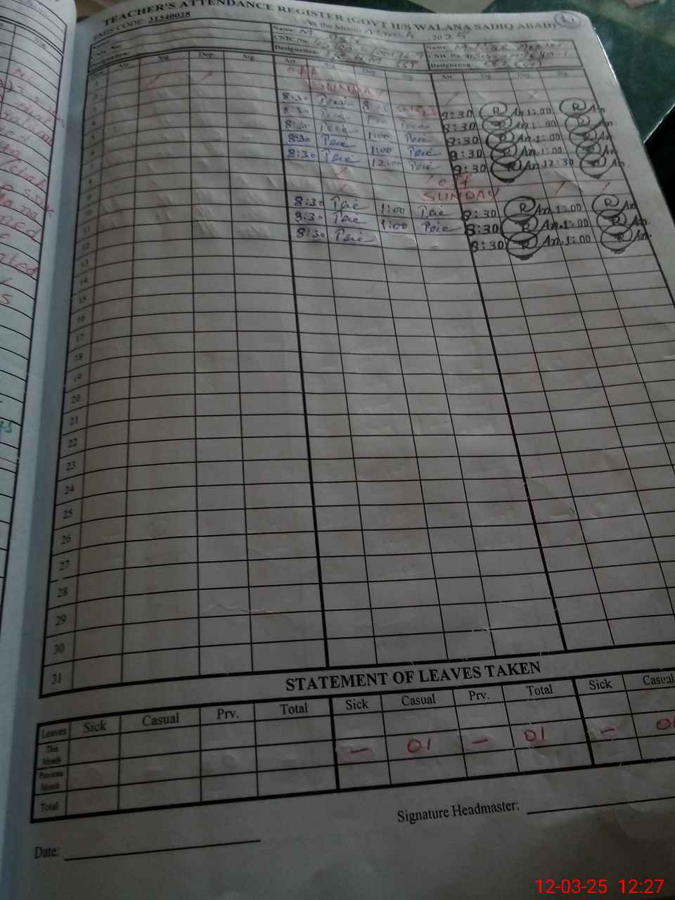 | 31**** | Ro**** As**** | PST | Regular | 2 | 3 | 0 | 0 | 0 | 0 | 0 | 0 | 2 | Casual |