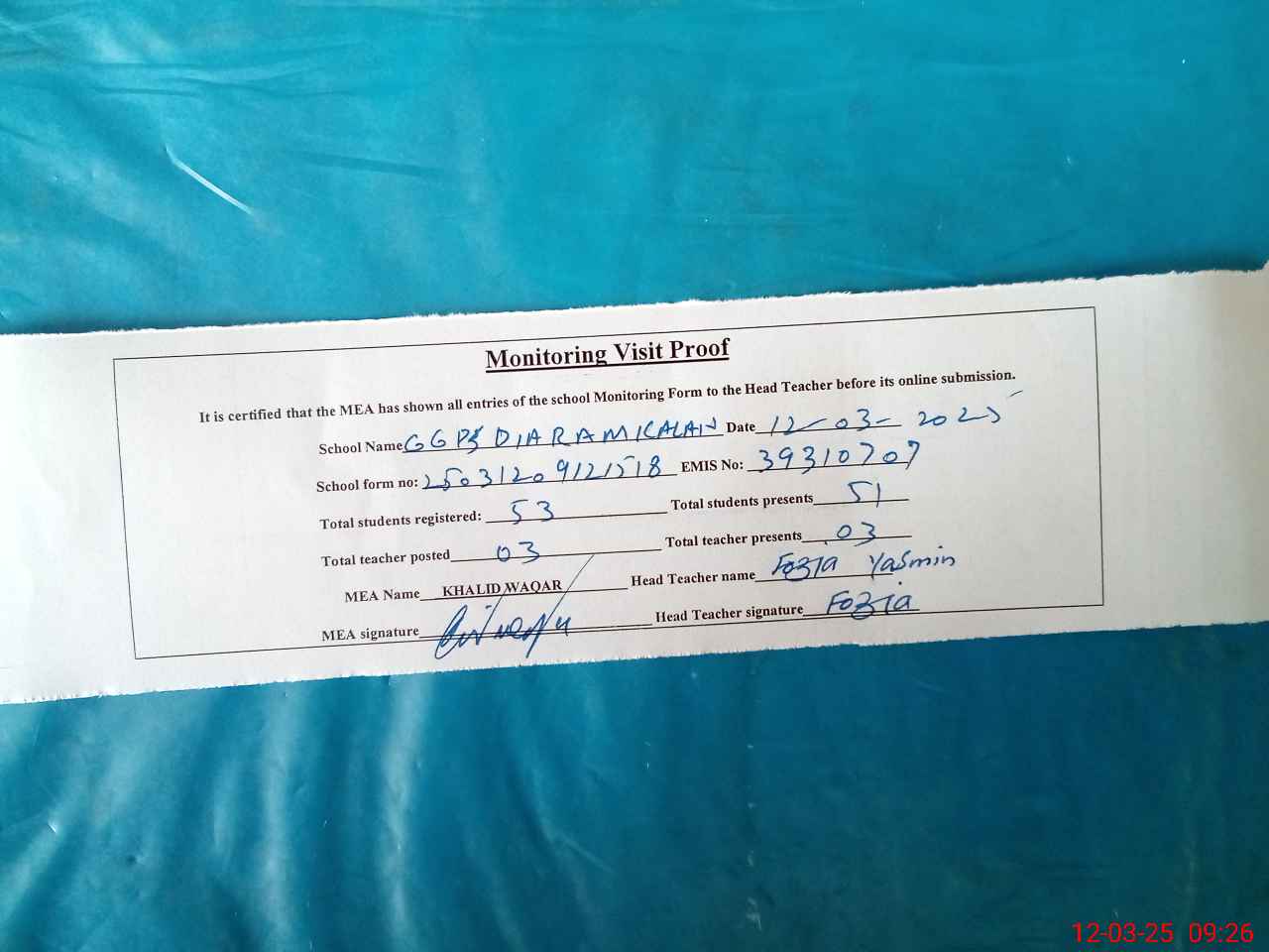 | EMIS Code: 39310707 | Name of School: GGPS DIARAM KALAN | |||