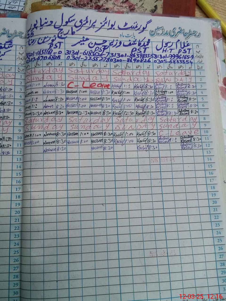 | Name: Gh**** Ra**** Designation: (School Headmaster's/Headmistress's) PST Phone/Cell Number: 03**** |