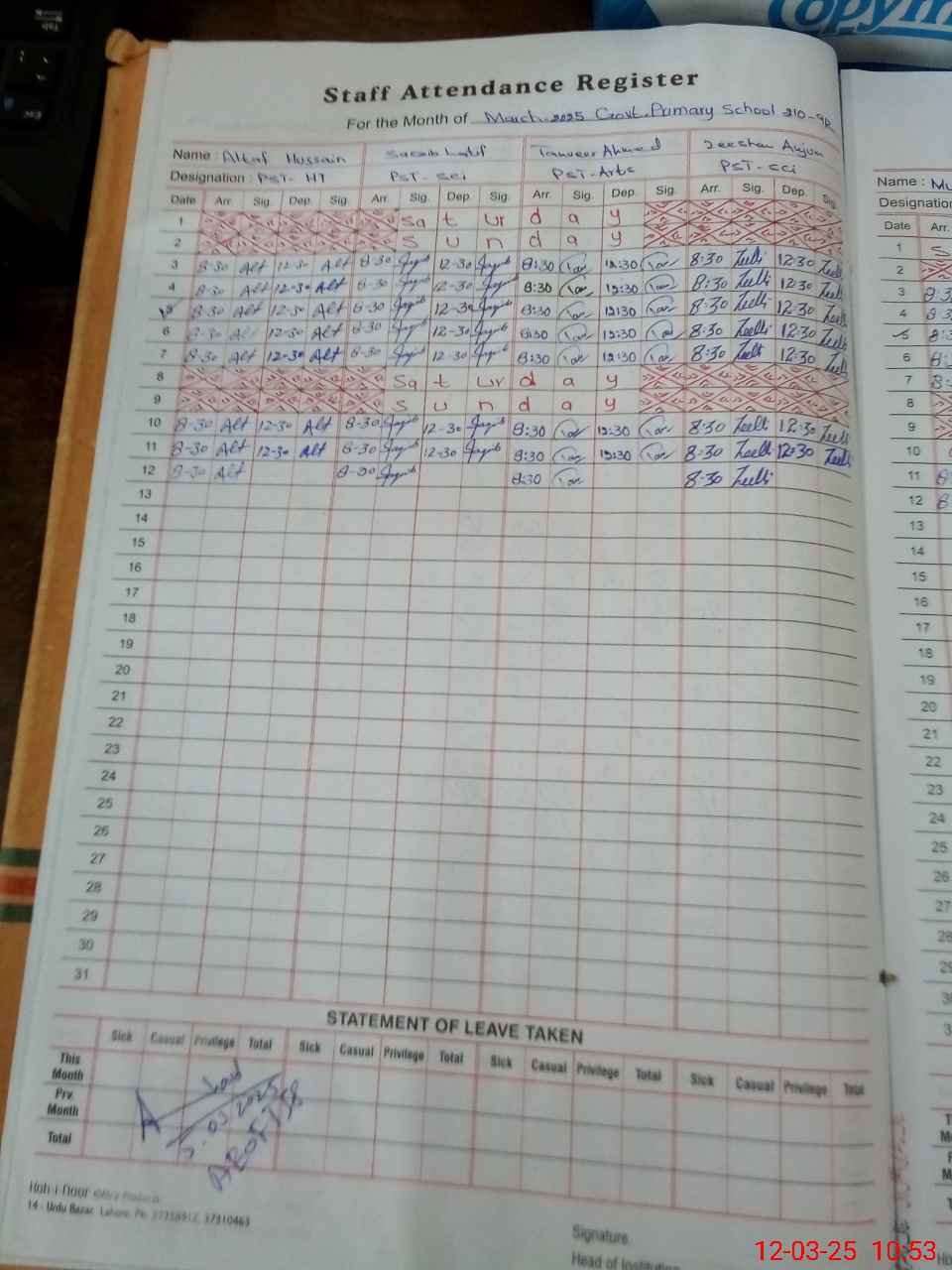 | CNIC | Full Name | Designation | R/C | Absence During Last Calender Month |