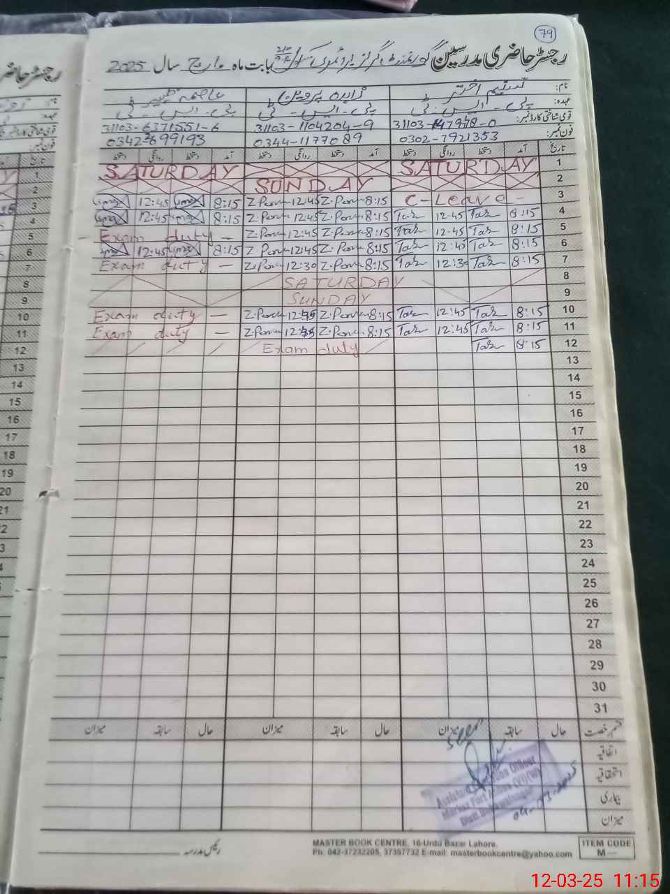 | 31**** | Za**** Pa**** | PST | Regular | 0 | 0 | 0 | 0 | 0 | 0 | 0 | 0 | 0 | Exam Duty |