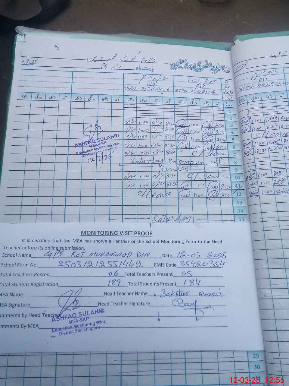 | EMIS Code: 35420354 | Name of School: GPS KOT MUHAMMAD DIN | |||