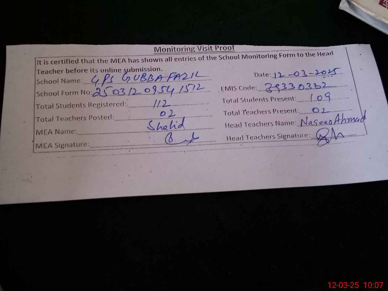 | EMIS Code: 39330332 | Name of School: GPS GUBBA FAZIL | |||