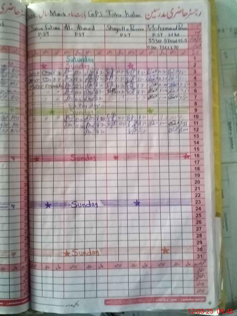 | Name: Mu**** Pe**** Designation: (School Headmaster's/Headmistress's) PST Phone/Cell Number: 03**** |