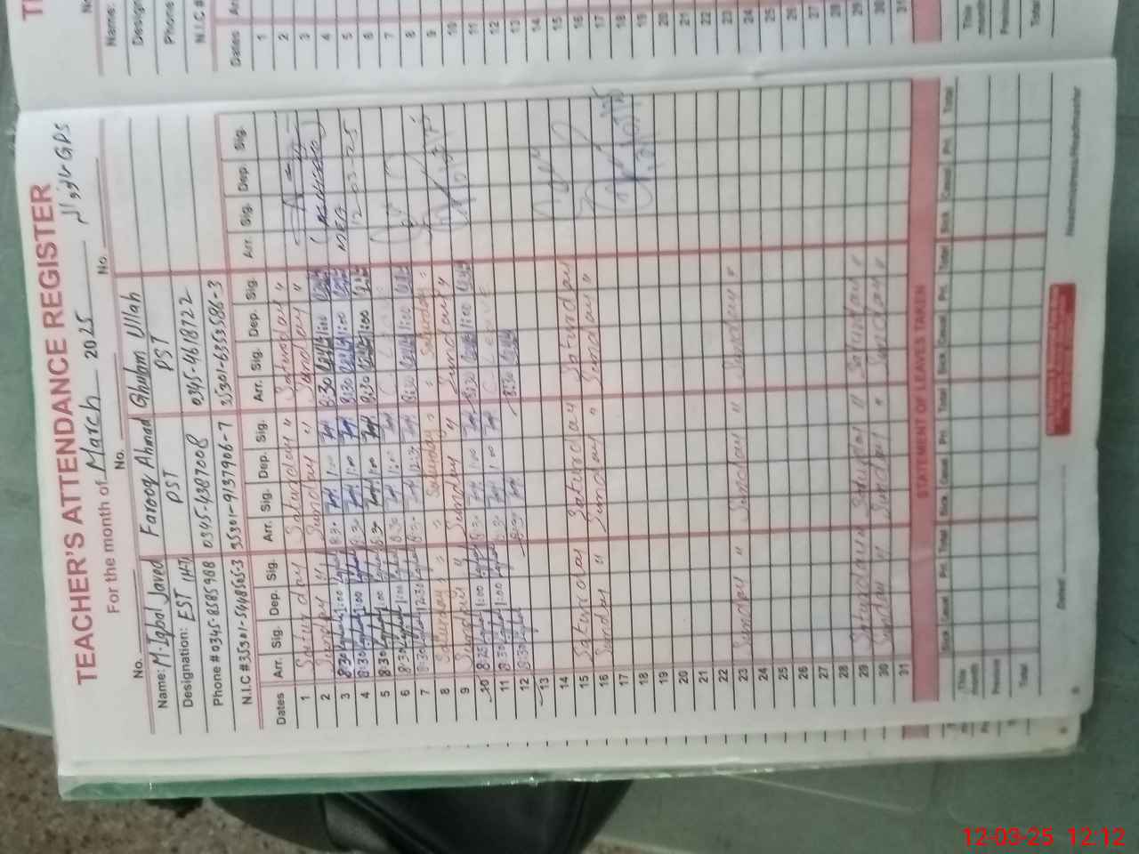 | Name: MU**** IQ**** JA**** Designation: (School Headmaster's/Headmistress's) EST V Phone/Cell Number: 03**** |