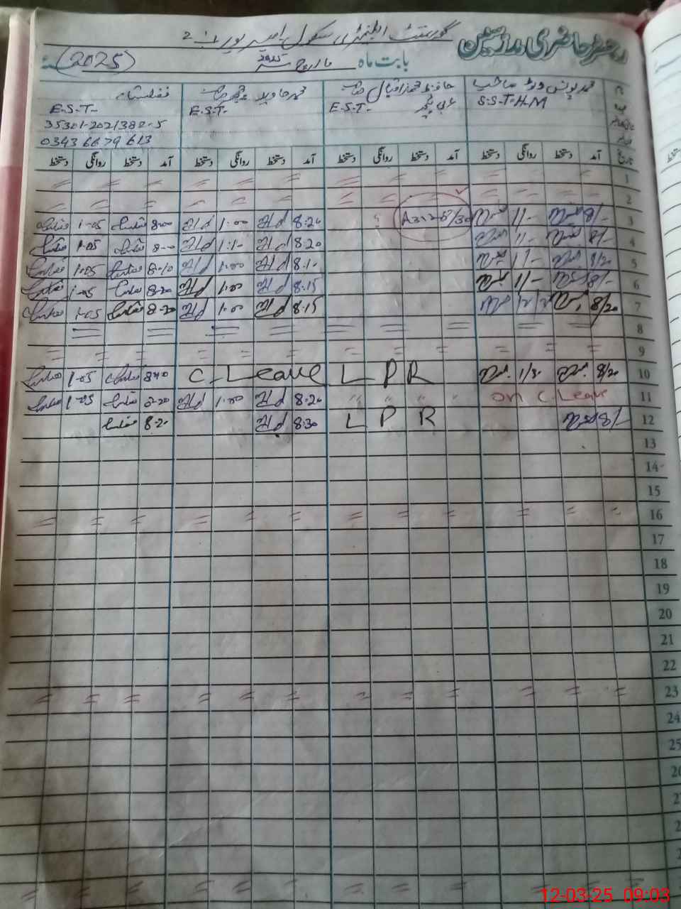| Name: M.**** Designation: (School Headmaster's/Headmistress's) S.S.T.(ENGLISH Phone/Cell Number: 03**** |