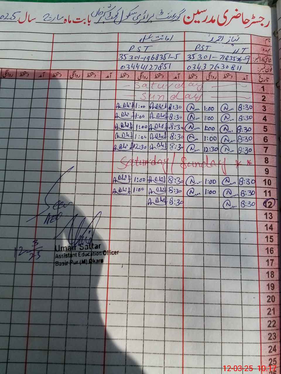| Name: NI**** AH**** Designation: (School Headmaster's/Headmistress's) PST Phone/Cell Number: 03**** |