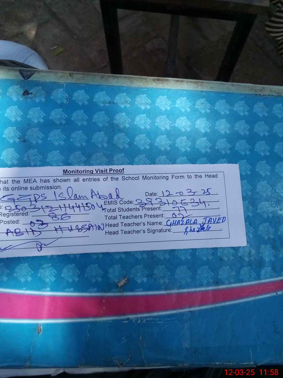 | EMIS Code: 39310634 | Name of School: GGPS ISLAM ABAD | |||