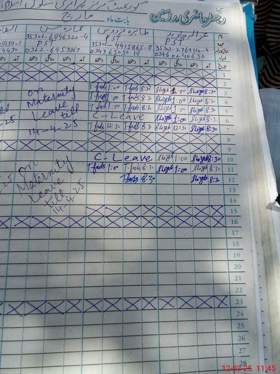 | 35**** | Am**** Ha**** | PST | Regular | 28 | 0 | 0 | 28 | 0 | 0 | 0 | 0 | 0 | Maternity |