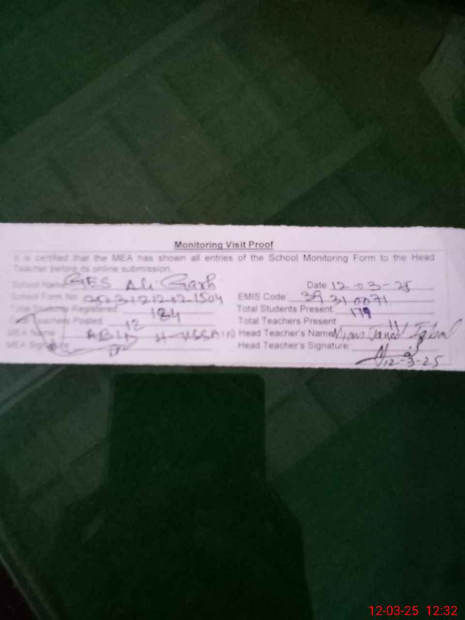 | EMIS Code: 39310071 | Name of School: GES ALI GARH | |||