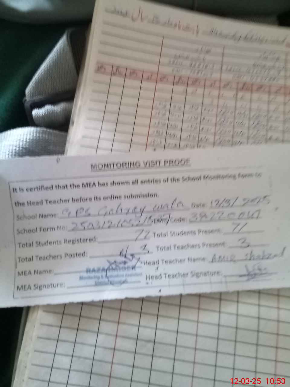 | EMIS Code: 38220047 | Name of School: GPS GOHRAY WALA | |||