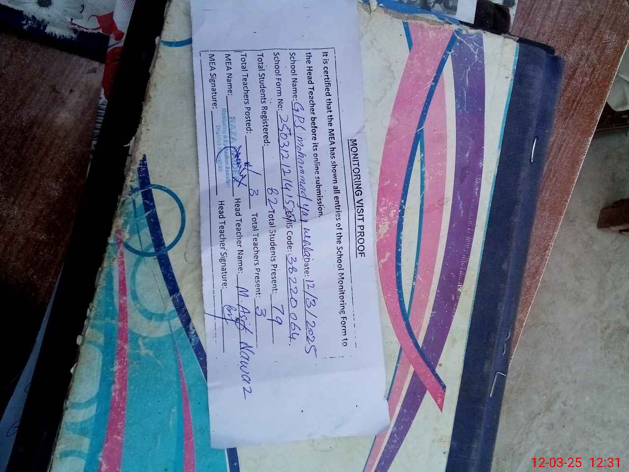 | EMIS Code: 38220064 | Name of School: GPS MUHAMMAD YAR WALA | |||