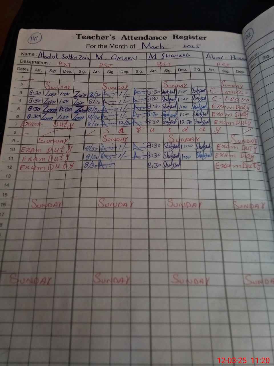 | 31**** | Ab**** Sa**** Za**** | Contract | 0 | 0 | 0 | 0 | 0 | 0 | 0 | 0 | 0 | Exam Duty | |