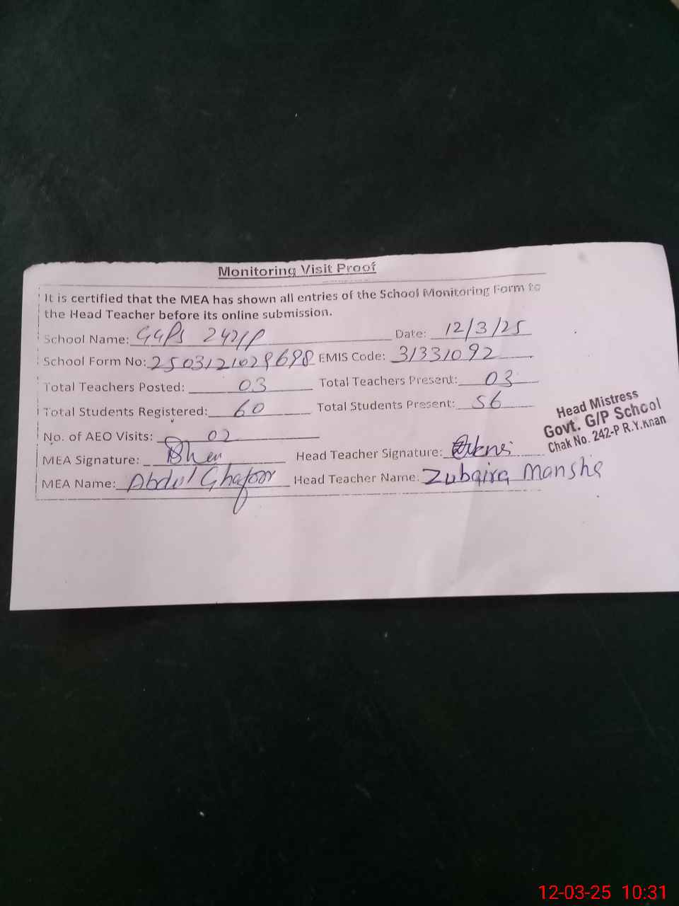 | EMIS Code: 31331092 | Name of School: GGPS CHAK 242 P | |||
