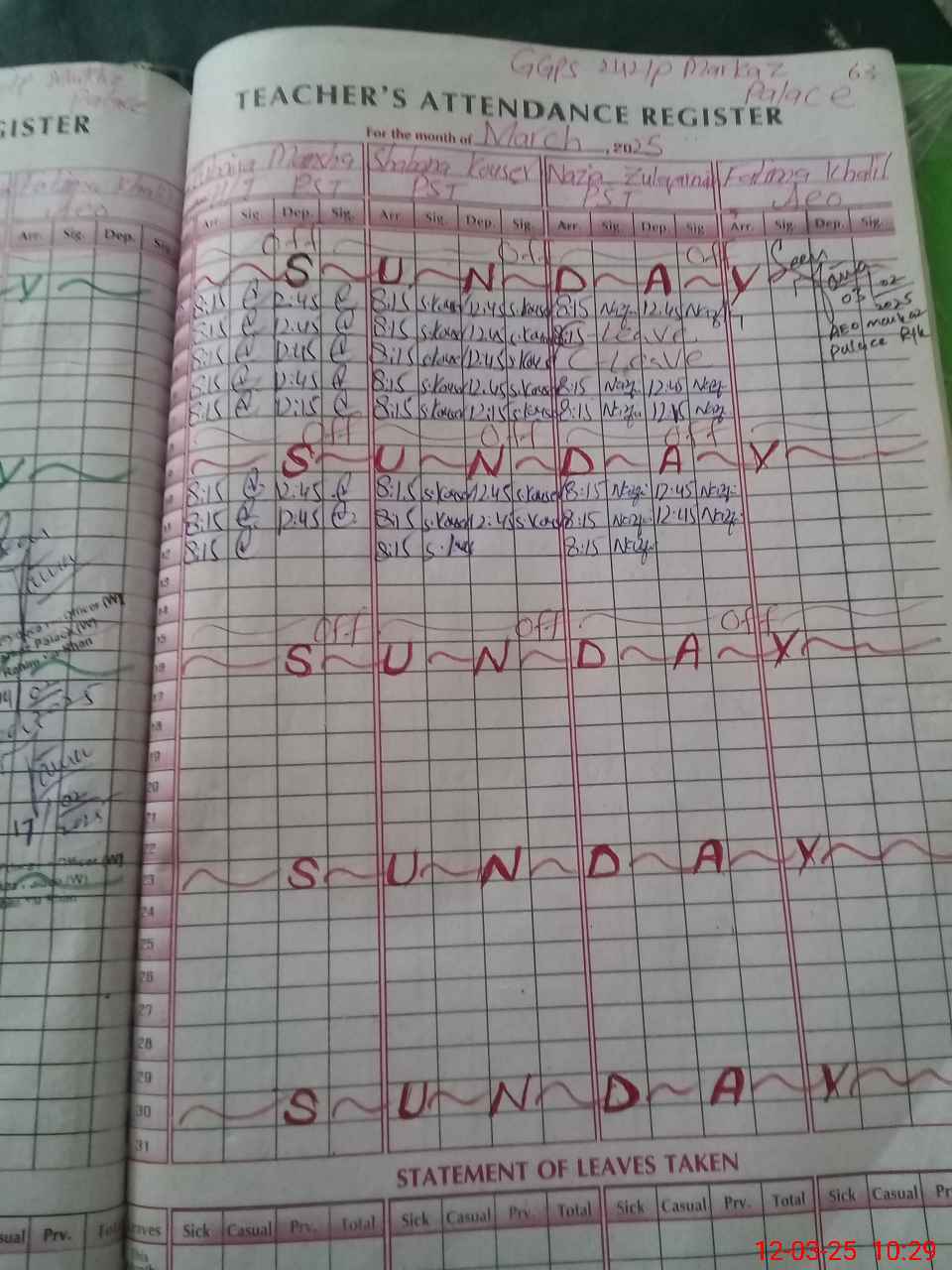 | Name: Zu**** Ma**** Designation: (School Headmaster's/Headmistress's) P S T Phone/Cell Number: 03**** |