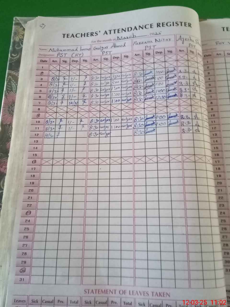 | Name: Mu**** Im**** Designation: (School Headmaster's/Headmistress's) PST Phone/Cell Number: 03**** |