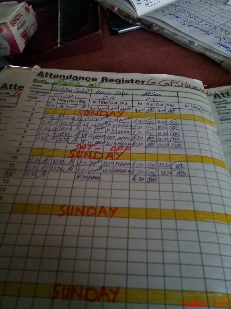 | CNIC | Full Name | Designation | R/C | Absence During Last Calender Month |
