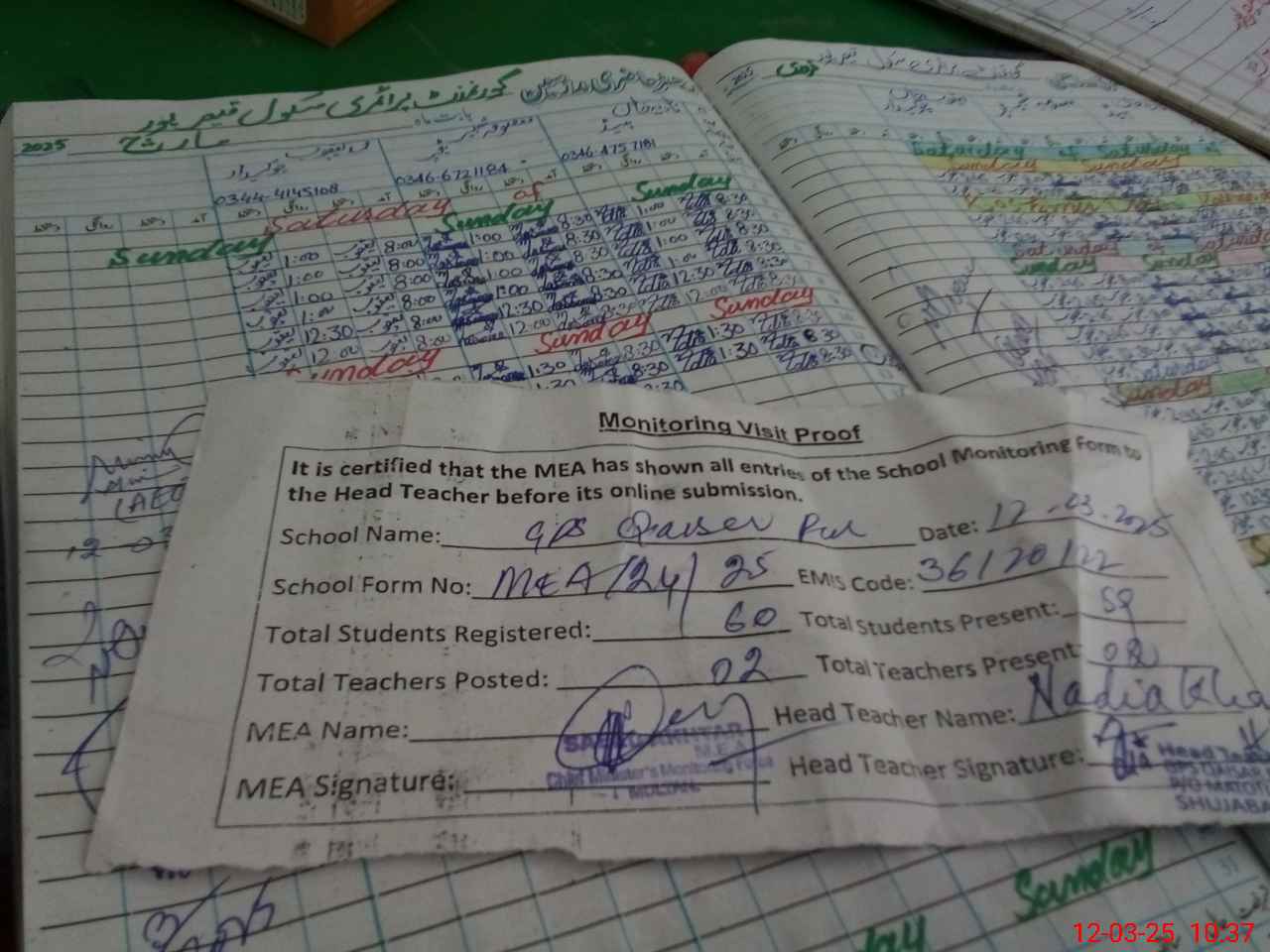 | EMIS Code: 36120122 | Name of School: GPS QAISAR PUR P/O MATOTLI SHUJABAD | |||