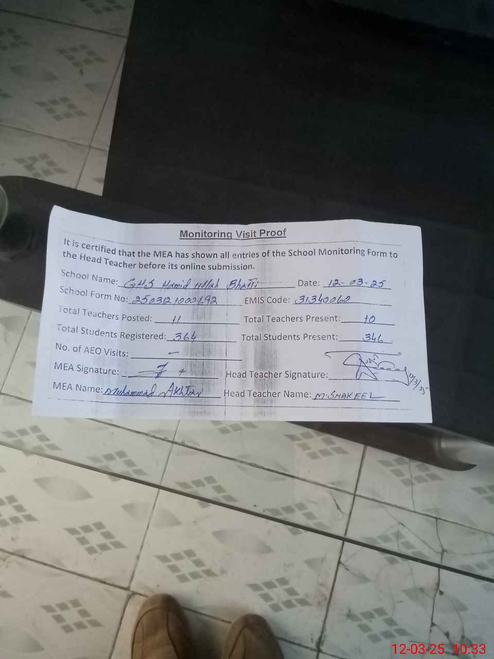 | EMIS Code: 31340060 | Name of School: GHS HAMID ULLAH BHATTI | |||