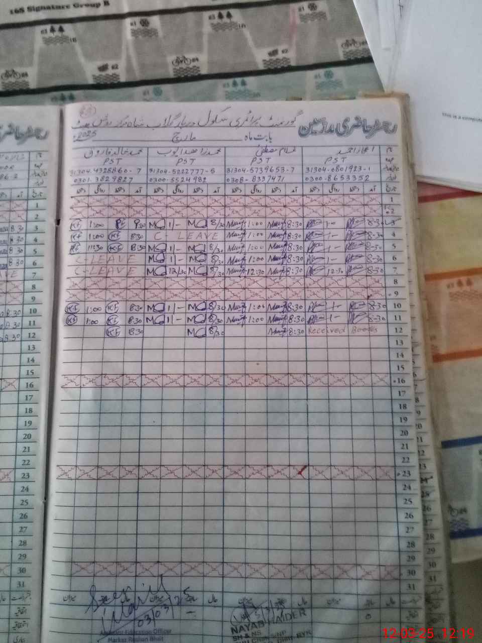 | Name: Mu**** Za**** Ay**** Designation: (School Headmaster's/Headmistress's) PST Phone/Cell Number: 03**** |