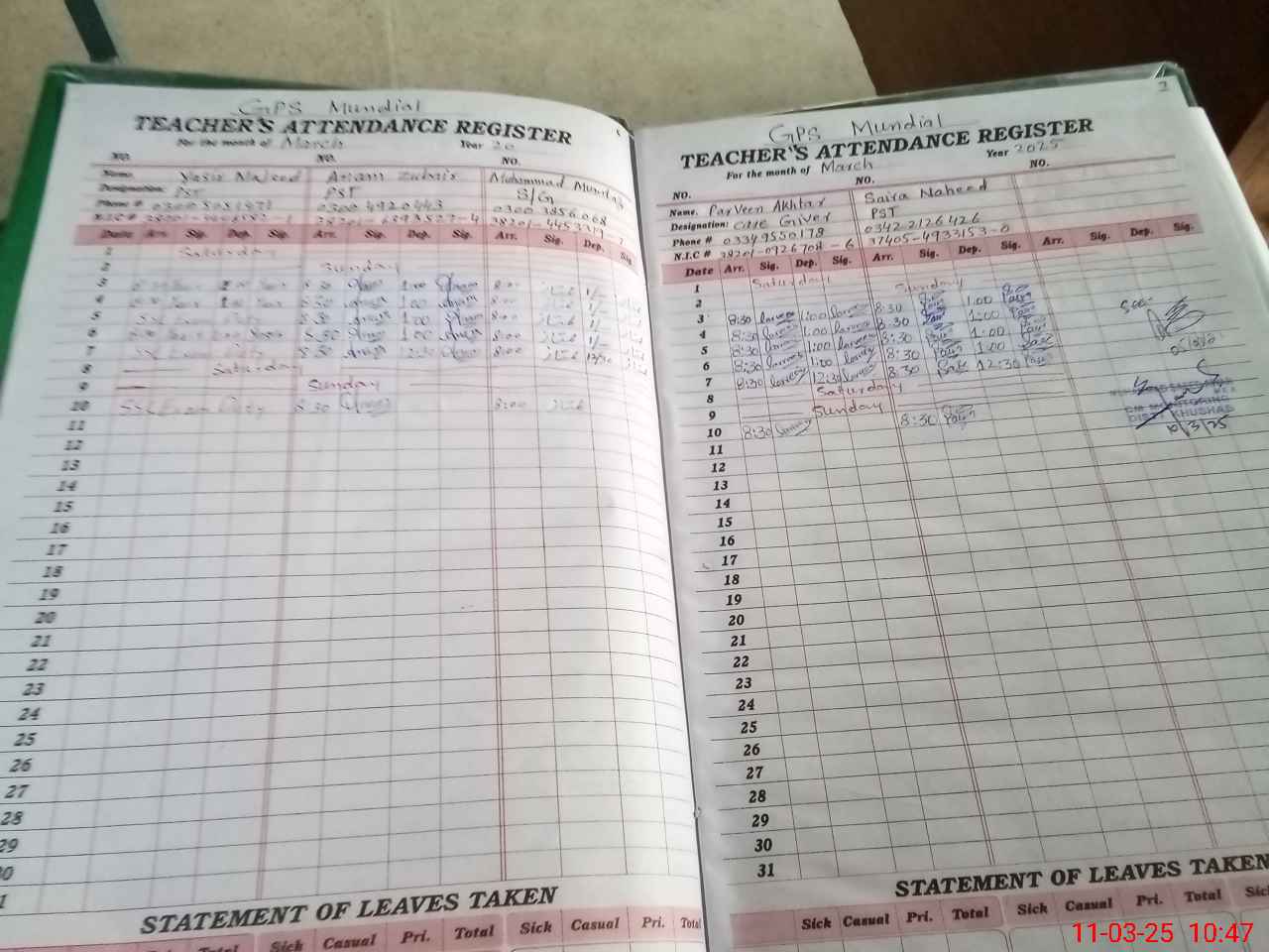 | Name: MU**** IS**** Designation: (School Headmaster's/Headmistress's) PST Phone/Cell Number: 03**** |