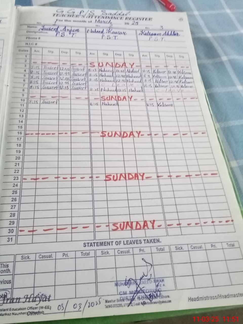 | Name: Ka**** Ak**** Designation: (School Headmaster's/Headmistress's) PST Phone/Cell Number: 03**** |