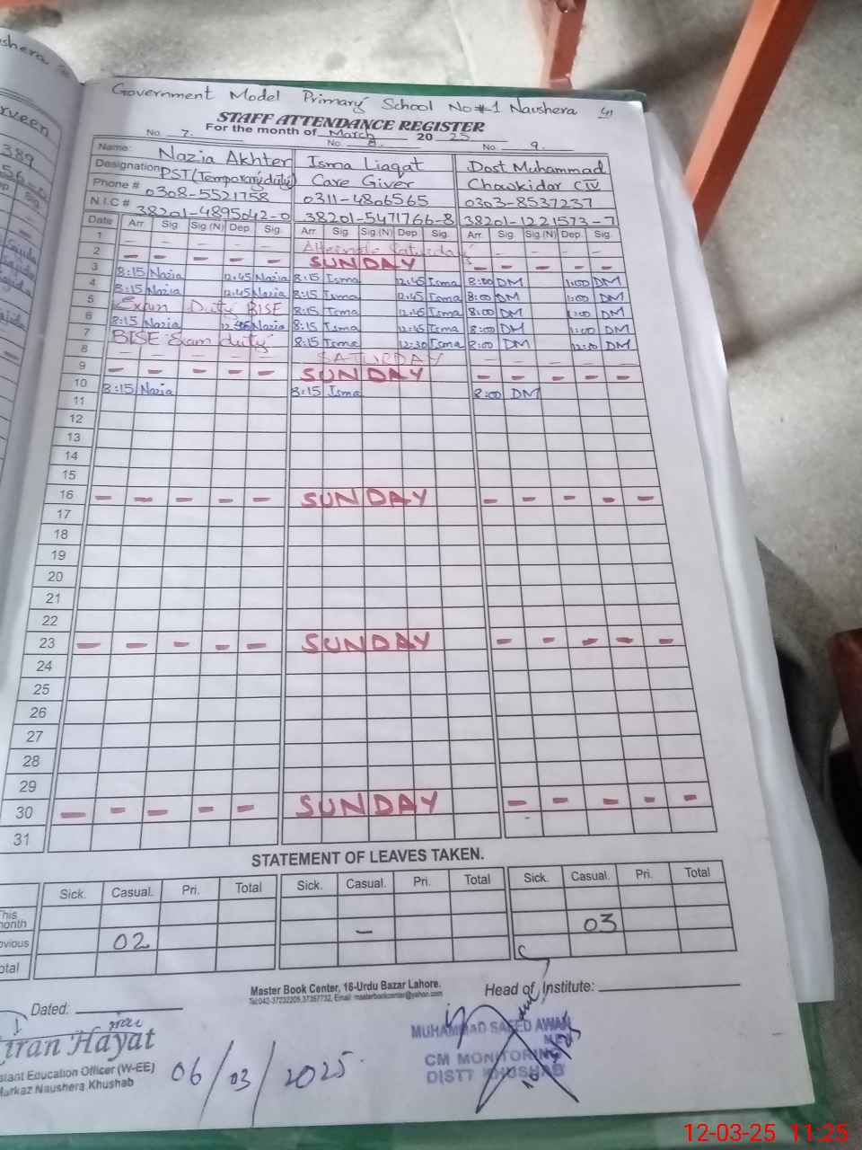 | EMIS Code: 38240705 | Name of School: GMPS NO. 1 NAUSHERA | |||