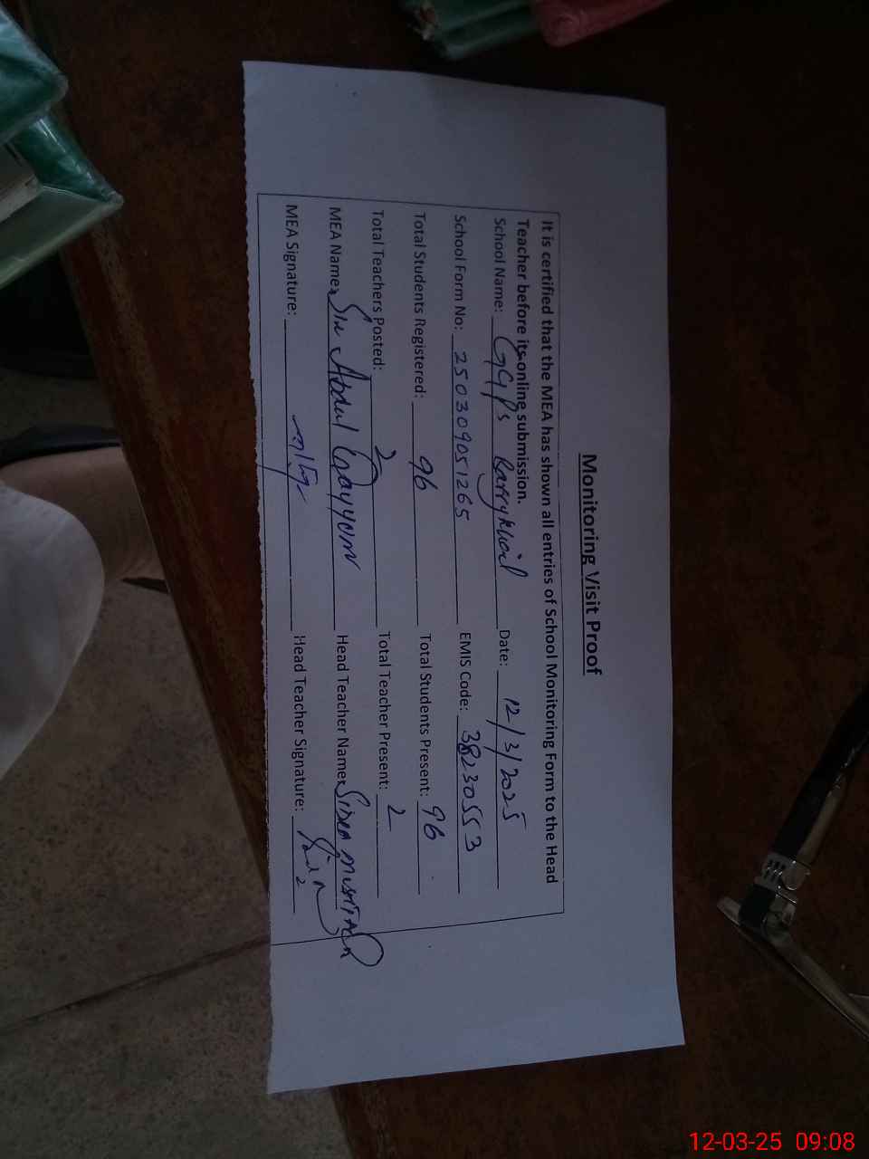 | EMIS Code: 38230553 | Name of School: GGPS BHAN BARRY KHAIL | |||