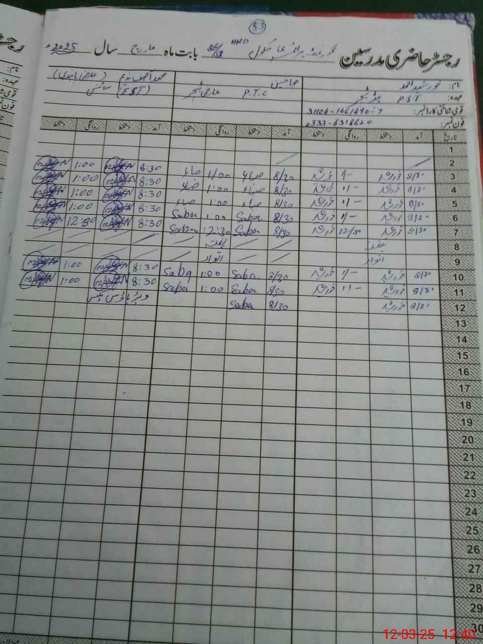 | Name: Kh**** Ah**** Designation: (School Headmaster's/Headmistress's) PST Phone/Cell Number: 03**** |