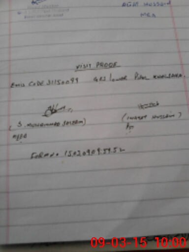 | Monitoring Date: 09-03-2015 | Start Time: 09-03-2015 08:58 AM | End Time: 09-03-2015 10:02 AM | Name of MEA: Mu**** Sa**** BN**** 33 | |