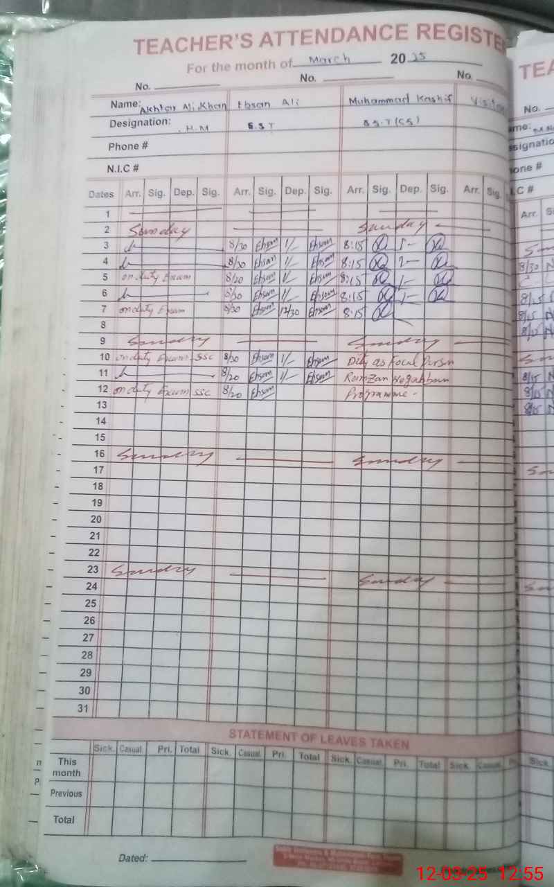 | 36**** | Ak**** Al**** Kh**** | Regular | 0 | 0 | 0 | 0 | 0 | 0 | 0 | 0 | 0 | Exam Duty | |