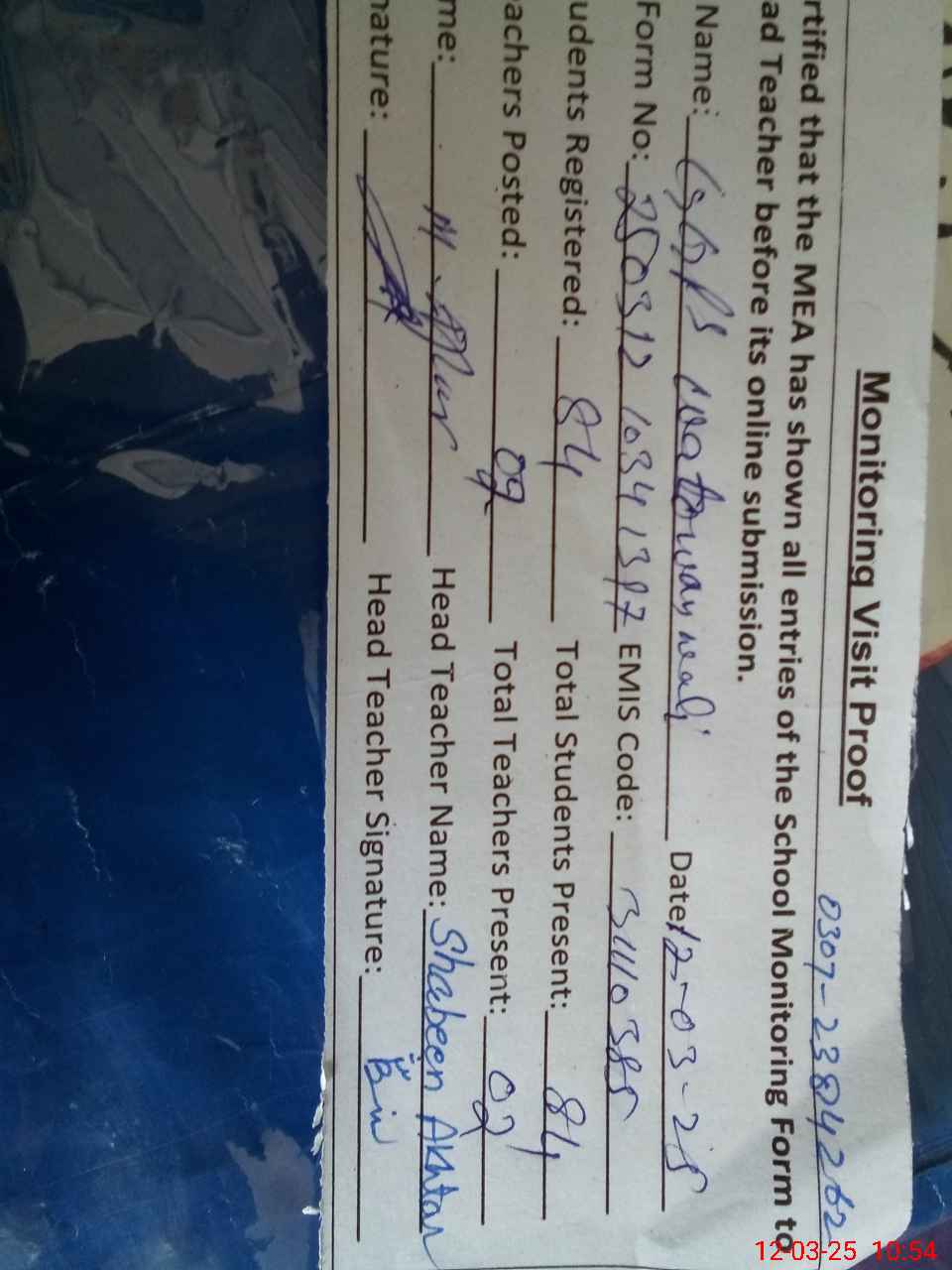 | Name: Sh**** Ak**** Designation: (School Headmaster's/Headmistress's) ESE Phone/Cell Number: 03**** |