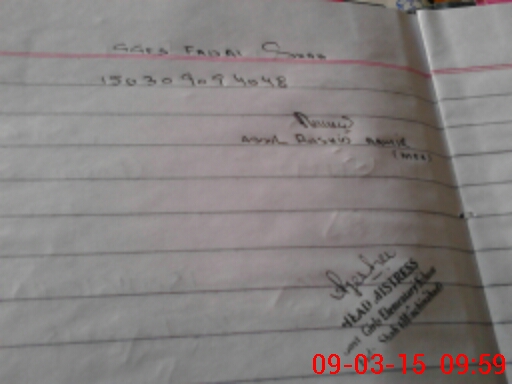 | Name: If**** Na**** Designation: (School Headmaster's/Headmistress's) SST Phone/Cell Number: 03**** |