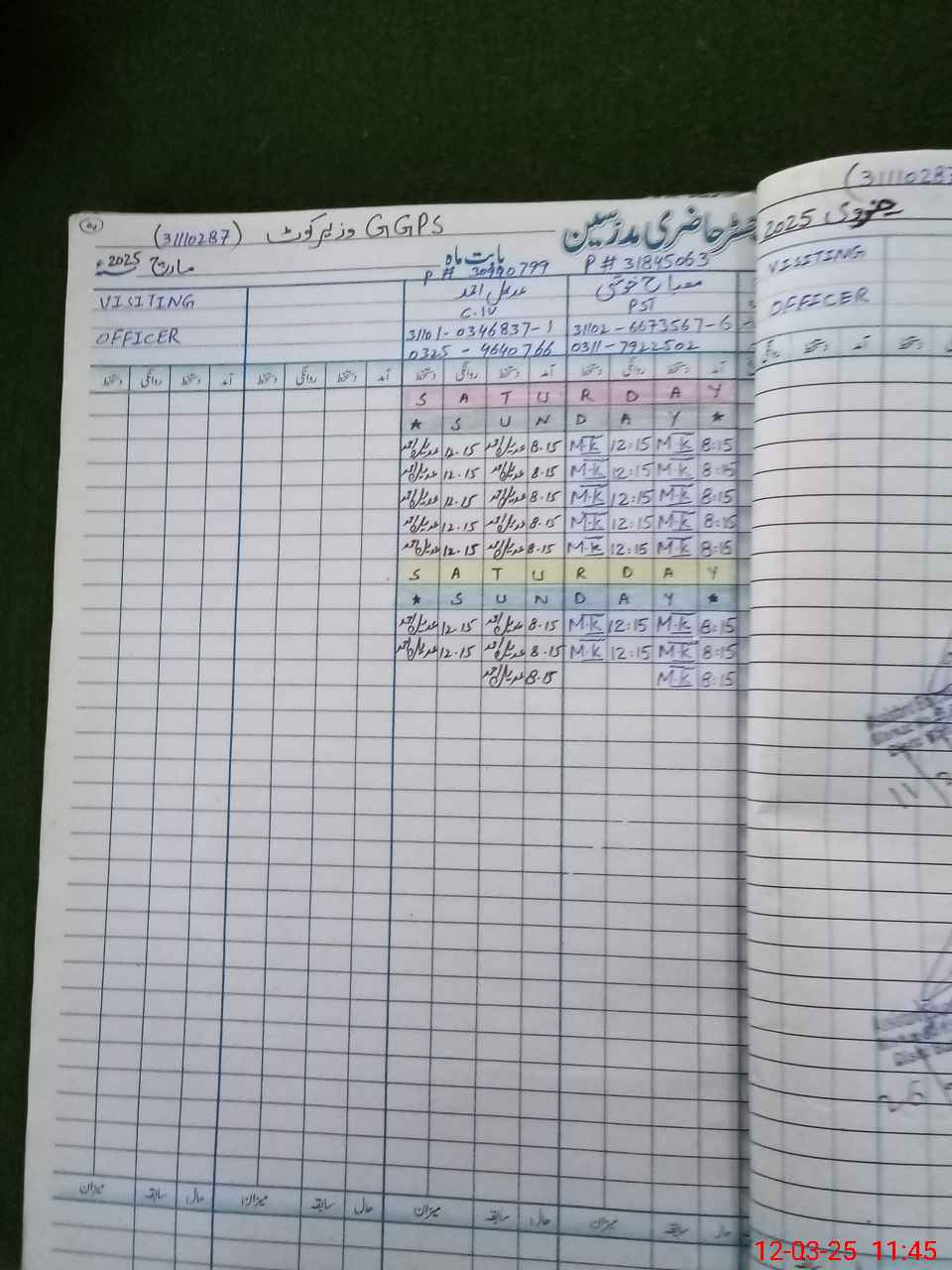 | CNIC | Full Name | Designation | R/C | Absence during last cal. month |