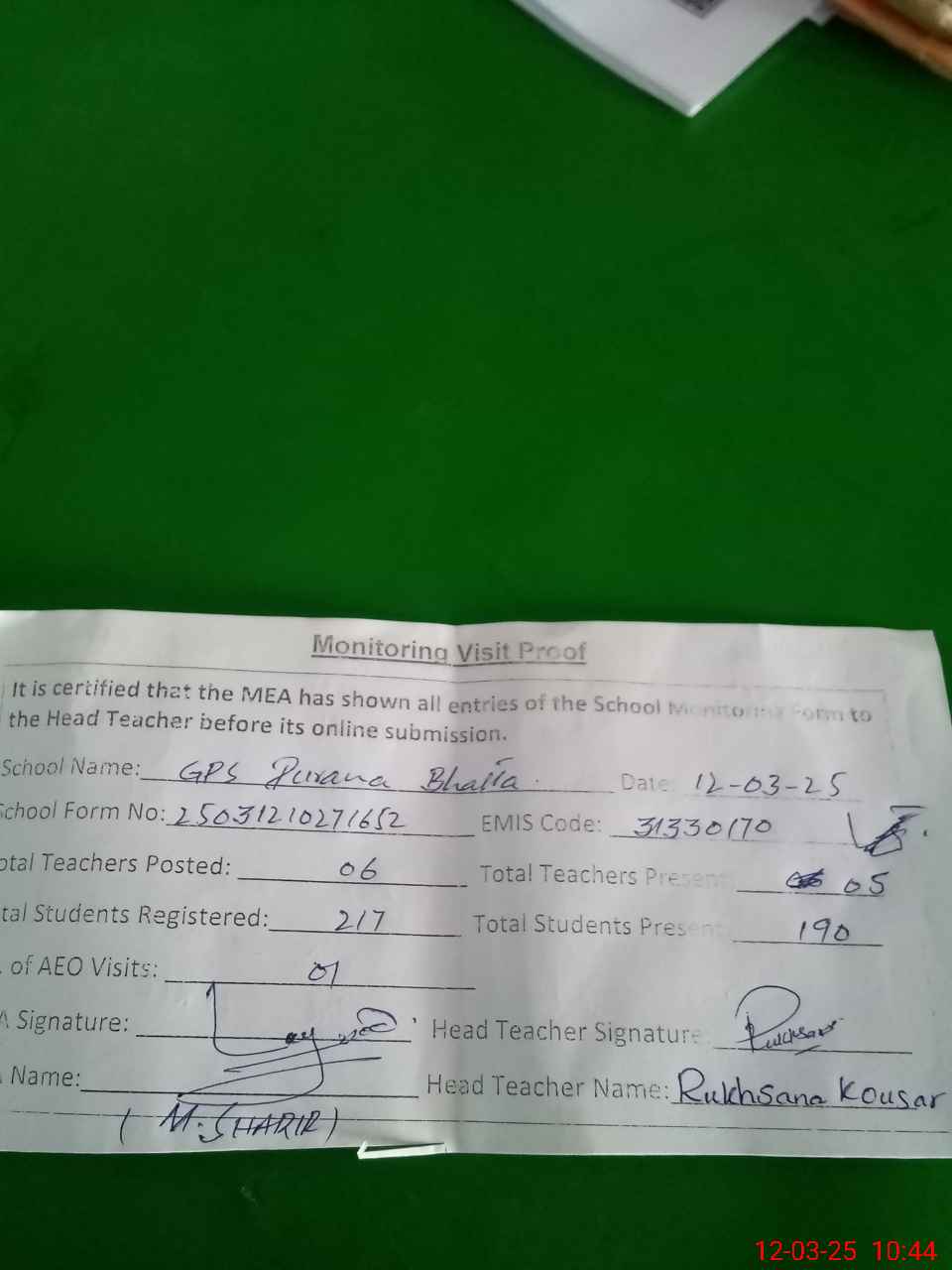 | EMIS Code: 31330170 | Name of School: GPS PURANA BHATTA RYK | |||