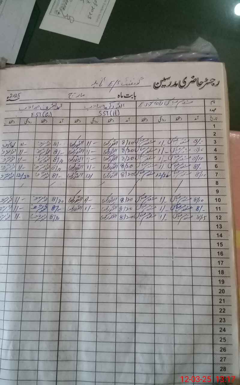 | 38**** | Zu**** Iq**** | PST | Regular | 6 | 0 | 0 | 0 | 0 | 0 | 0 | 0 | 6 | Exam Duty |