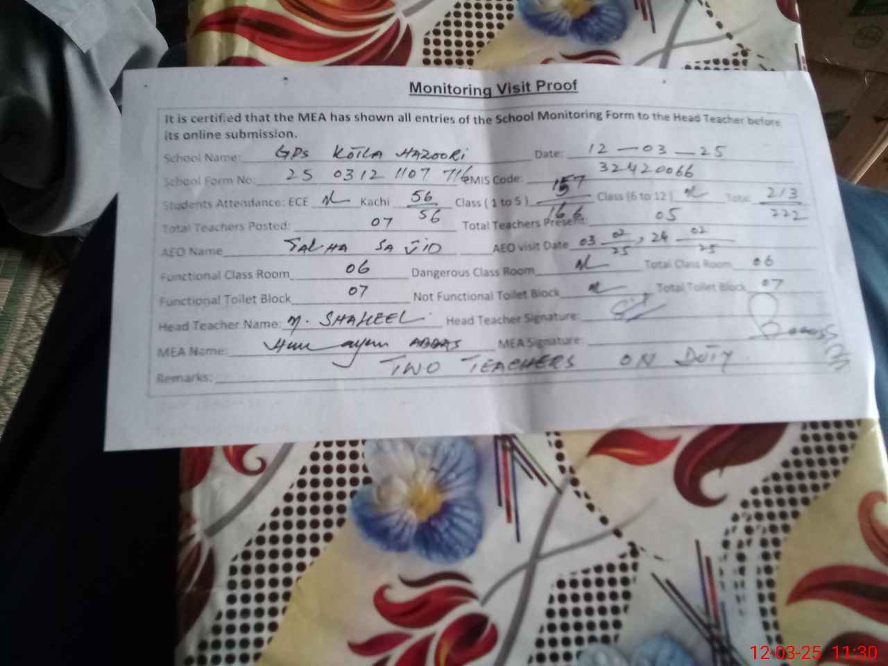 | EMIS Code: 32420066 | Name of School: GPS KOTLA HAZOORI | |||