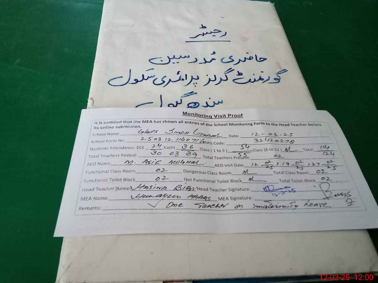 | EMIS Code: 32420278 | Name of School: GGPS SINDH GABOOL | |||