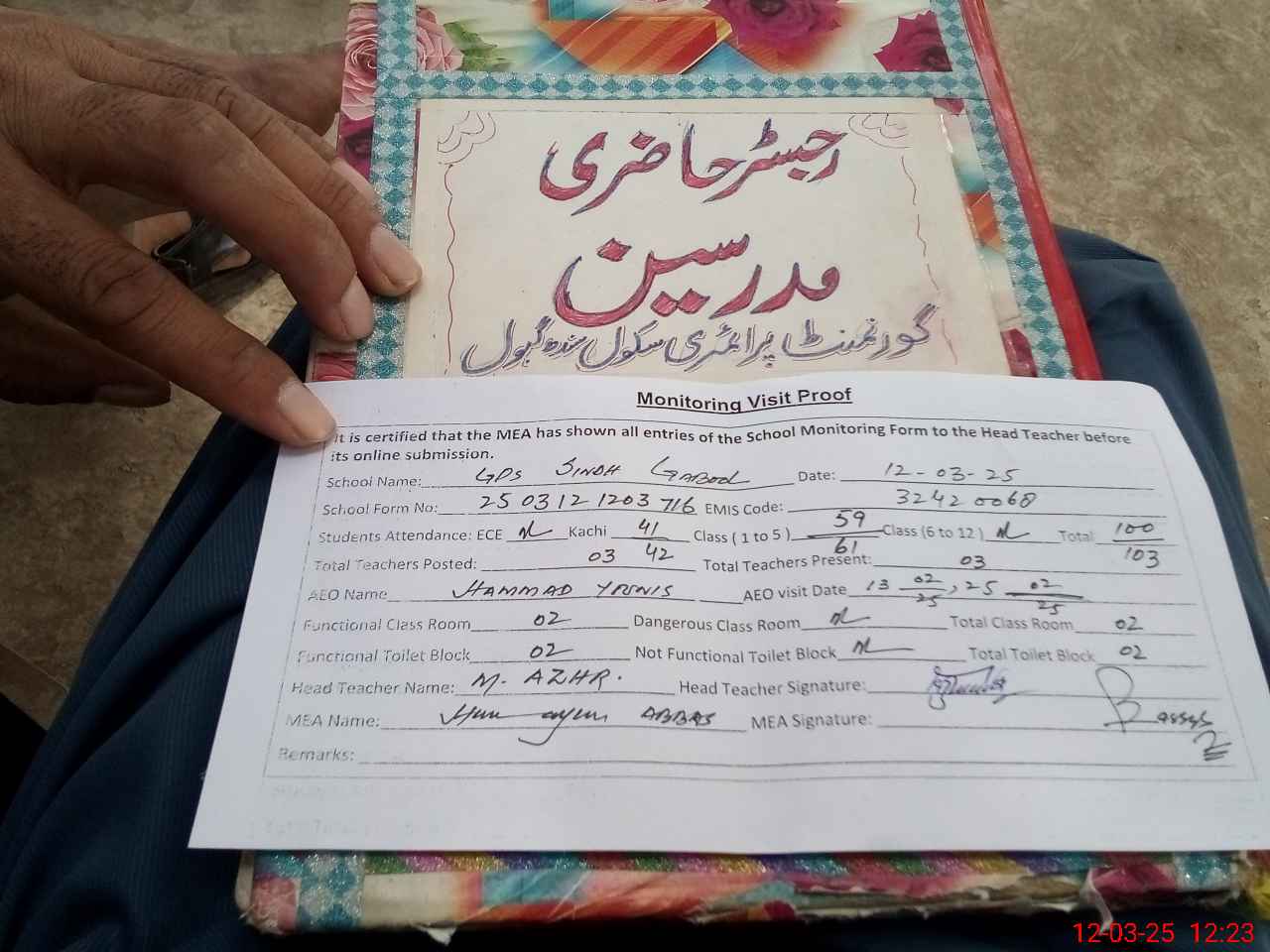 | EMIS Code: 32420068 | Name of School: GPS SINDH GABOL | |||