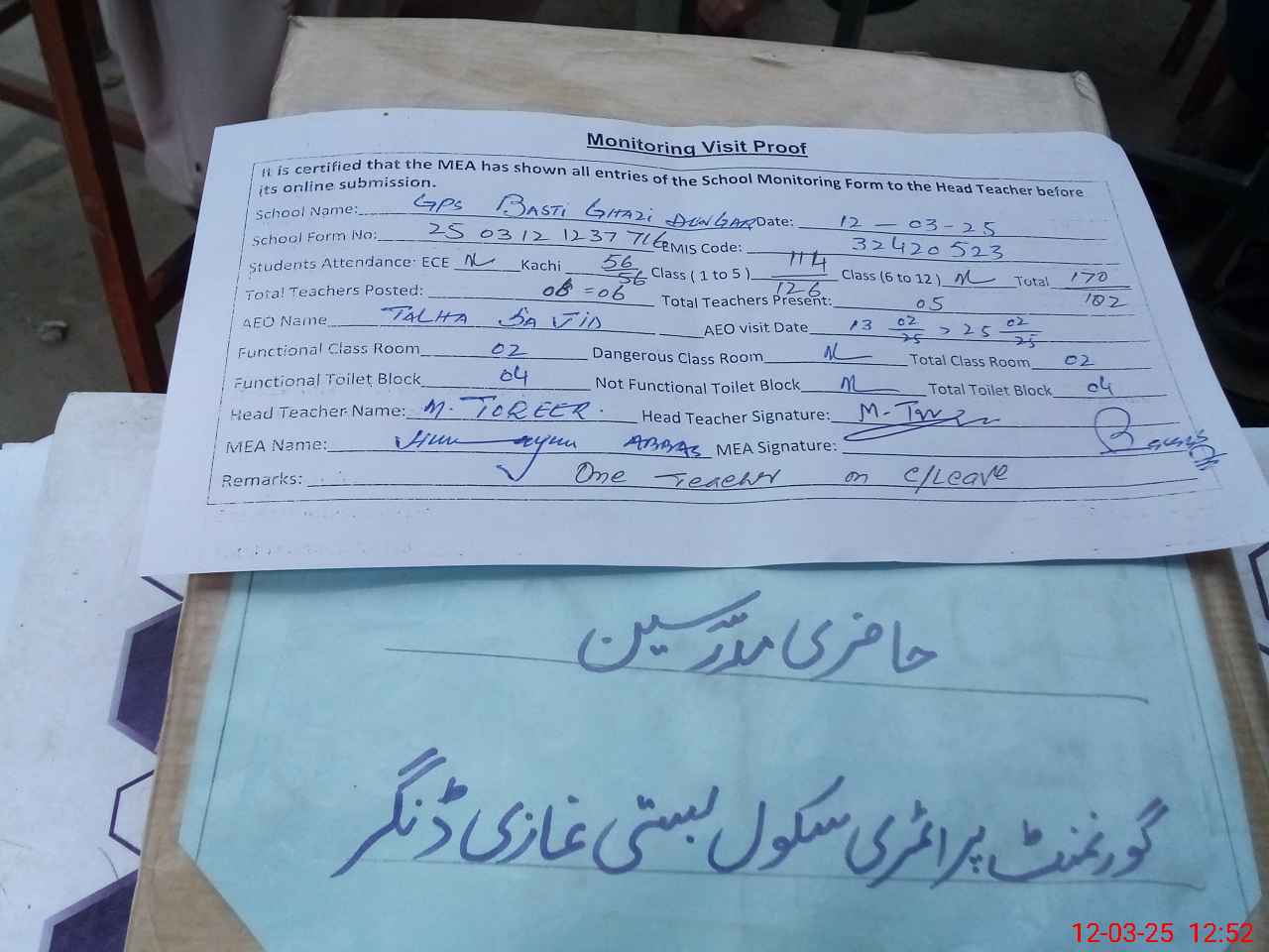 | EMIS Code: 32420523 | Name of School: GPS BASTI GHAZI DANGER | |||