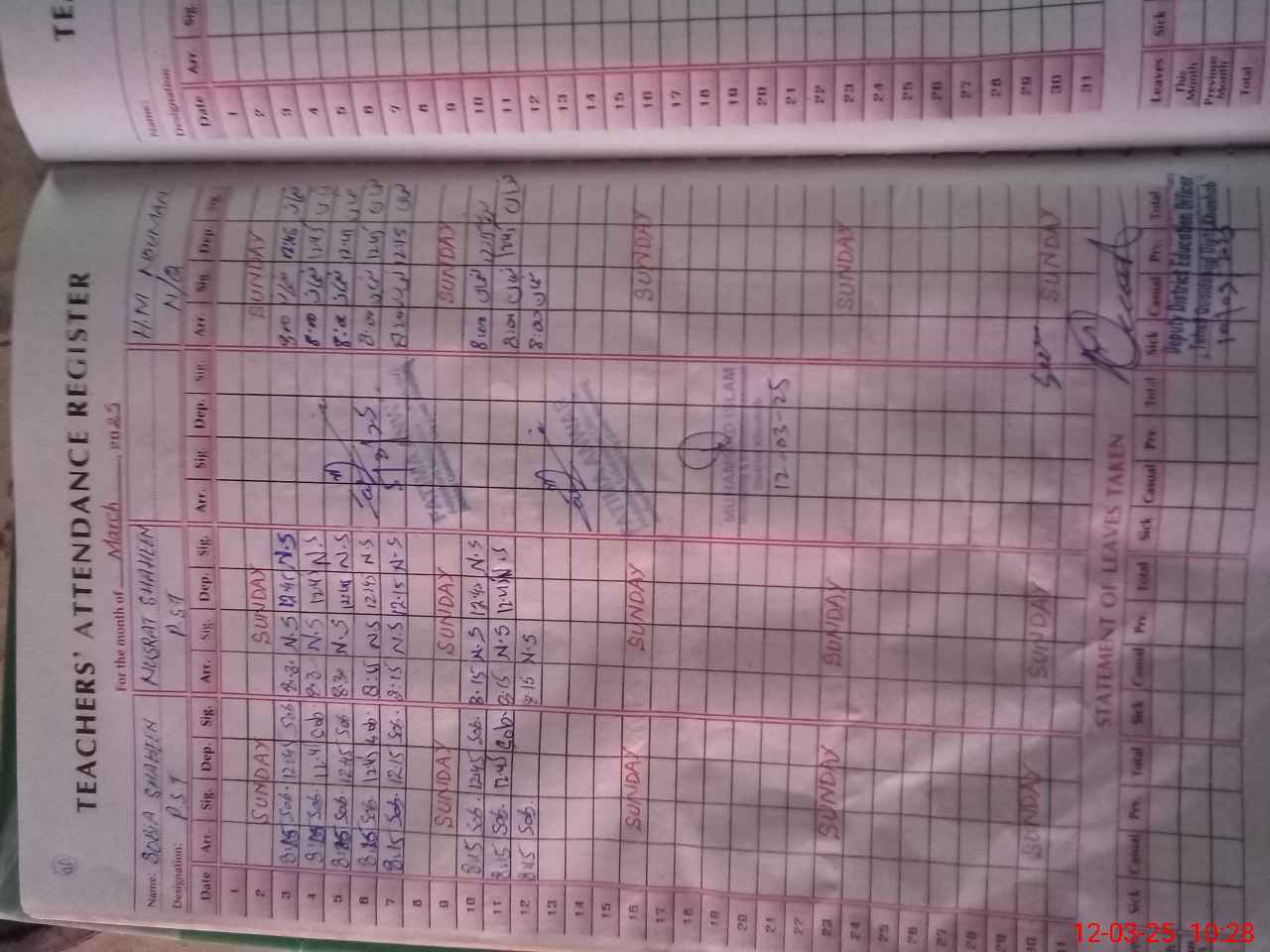 | 38**** | Za**** Pa**** | PST | Regular | 0 | 0 | 0 | 0 | 0 | 0 | 0 | 0 | 0 | Exam Duty |
