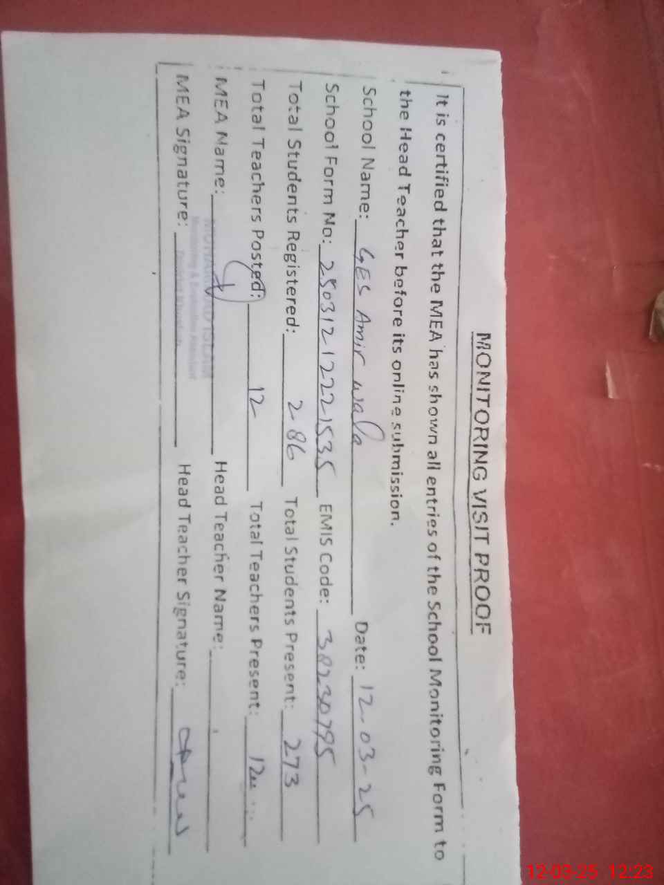 | EMIS Code: 38230795 | Name of School: GES AMIR WALA | |||
