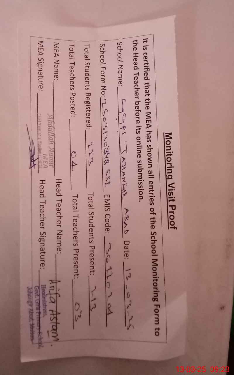 | EMIS Code: 36110204 | Name of School: GGPS JAHANGIR ABAD MULTAN | |||