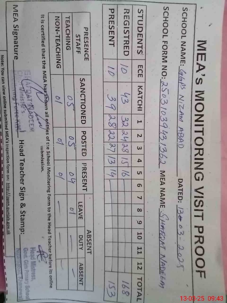 | EMIS Code: 36420349 | Name of School: GGPS NIZAM ABAD, KHANEWAL | |||