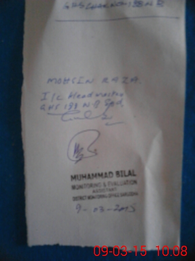 | Name: MA**** HU**** Designation: (School Headmaster's/Headmistress's) SST (SCI) Phone/Cell Number: 03**** |