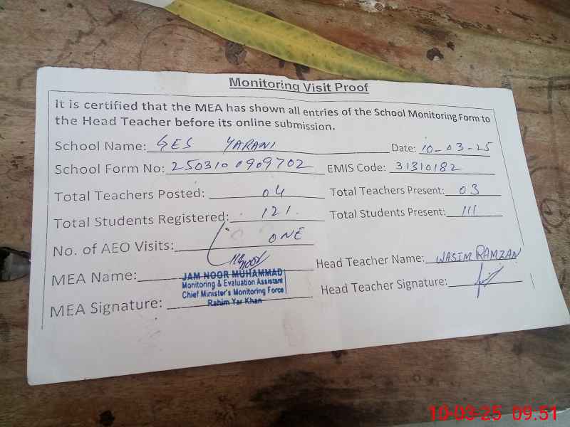 | EMIS Code: 31310182 | Name of School: GES YARANI BASTI YARANI (After Noon) | |||