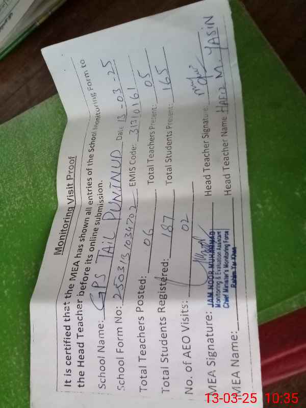 | EMIS Code: 31310161 | Name of School: GPS TAILL PUNJ NUND | |||